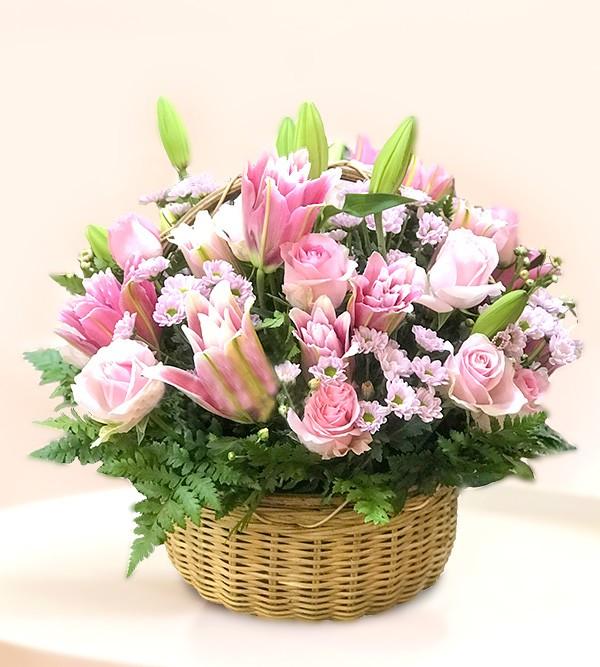 Loại hoa: hoa ly hồng, hoa hồng kem, hoa cát tường trắng